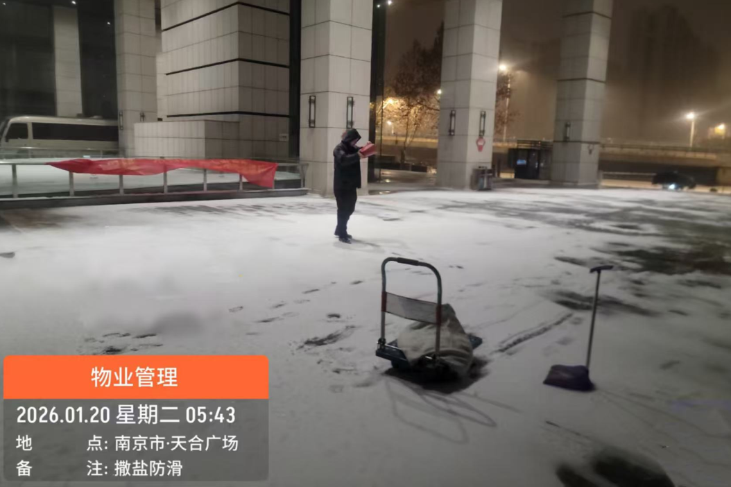 1月20日,瑞雪纷纷扬扬飘落,江苏省供销合作经济产业园区披上了银白盛装,但同时也给企业的出行造成了诸多不便,并带来了安全隐患。资管公司高度重视、迅速响应,第一时间启动雨雪天气应急预案,压实责任、提前部署。不仅备齐备足雪铲、融雪剂、防滑垫等物资,更对供水、供电、空调等设施开展全面排查,筑牢园区平稳运行防线。