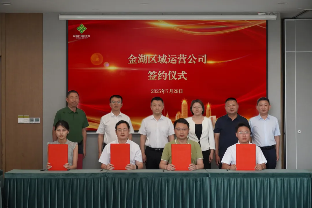 为加快建设全省供销合作社农村现代流通服务网,着力打造“省级运营平台+区域运营公司+直供基地”三级直供配送网络。7月29日,共建金湖区域运营公司签约仪式在苏合农产品集团成功举办。省总社党组成员、理事会副主任,苏合集团党委书记、董事长卓炜;淮安市社党组书记、理事会主任李义翠;苏合集团党委副书记、总经理华天泽等出席活动并见证签约。